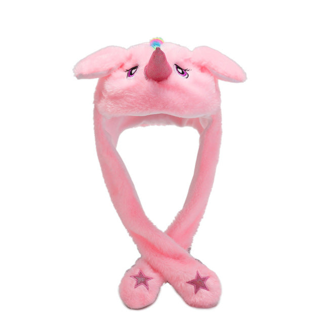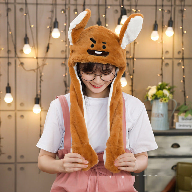 Kocozo Rabbit Hat with Moving Ears Cute Cartoon Toy Hat Airbag Kawaii Funny Toy Cap Kids Plush Toy Birthday Gift  Hat for Girls